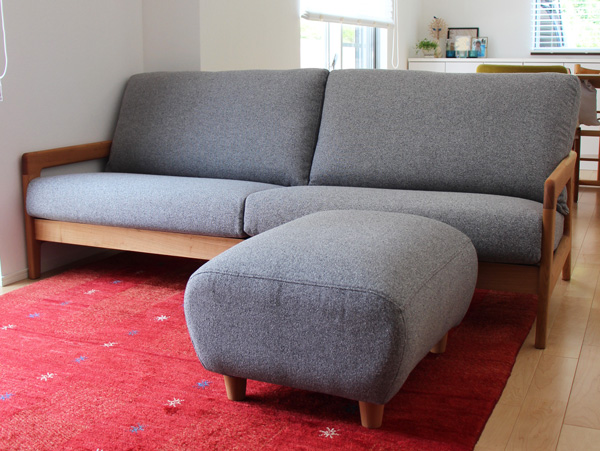 岡崎市 T様(00796s)WALD(ヴァルト)ソファ3人掛けサイズ:W1860×D860×H750 SH380樹 種 : ヤマザクラ材塗 装 :ナチュラル色張 地 :EC/ライトグレーRUND(ルント)オットマン カバーリング仕様サイズ:W650×D520×H370樹 種 : ヤマザクラ材塗 装 :ナチュラル色張 地 :EC/ライトグレー