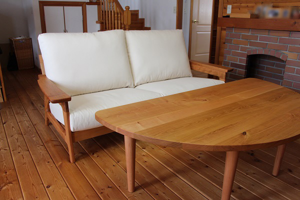 寄り添う♬山桜ソファ&半円テーブル 【セミオーダー】◆山桜を使った家具 納品ブログ