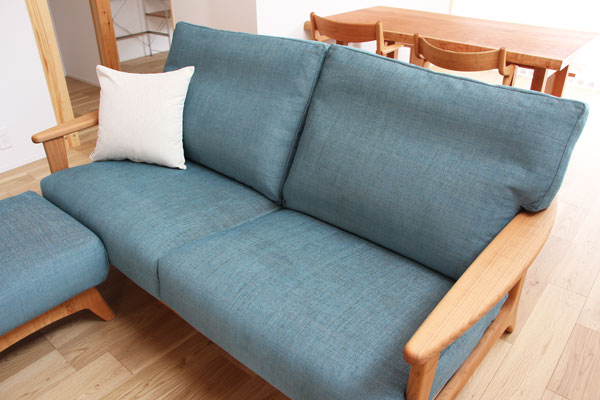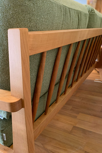 ナチュラルグリーンと山桜の組み合わせ♪アルム2.5人掛けソファ◆山桜を使った家具 納品ブログ
