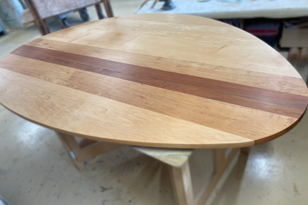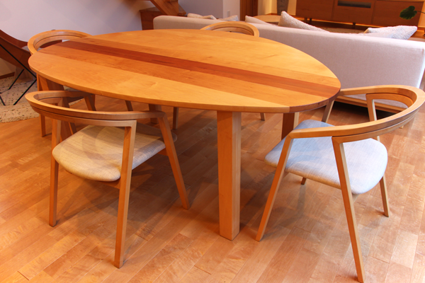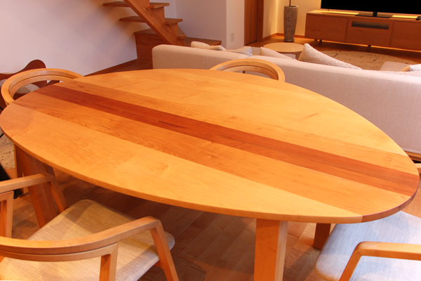 メープル、山桜、ホエビソ桜、シュリ桜の4種類の木材を使った特注サイズ(W1800×D1200)の天板です。