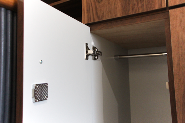 シャンプー台スペースにも同じ化粧板で収納棚を製作しました。