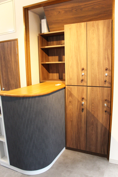 美容サロンRoy(ロイ)9月20日オープン!入口入ってすぐのところにレジカウンターとロッカーを設置しました。