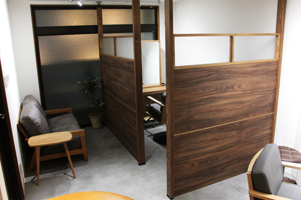 お客様にゆったりお過ごしいただけるよう、お部屋を仕切るパーテーションを設置しました。