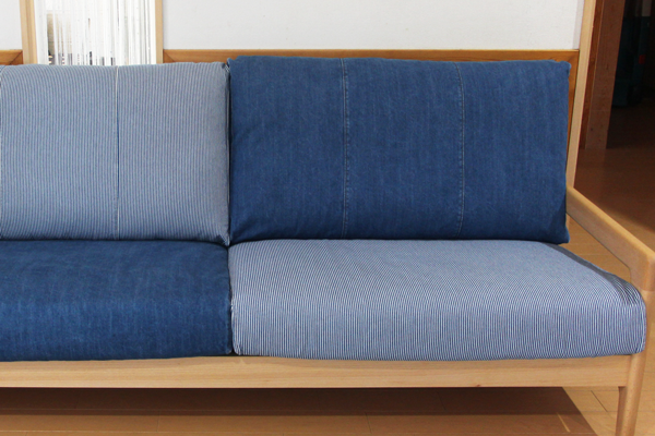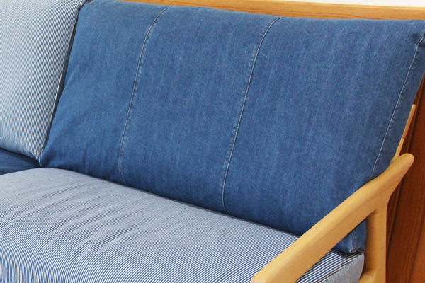 安城市A様(1480S)WALD(ヴァルト)3人掛けソファサイズ:W1860×D860×H750 SH380樹 種:ブナ材塗 装:ナチュラル色張 地:デニム無地×ヒッコリー