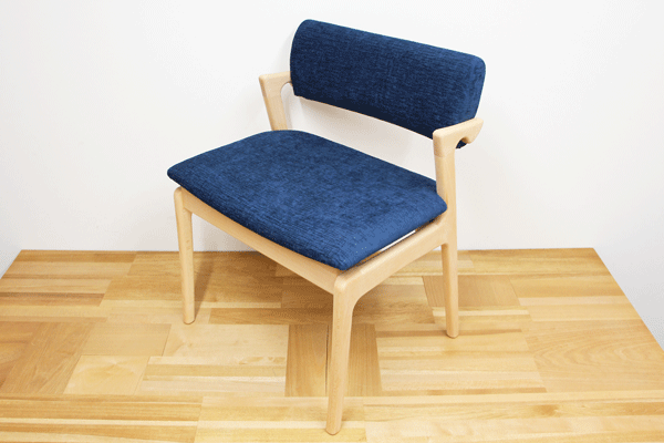 ◆ステッキチェア 幅広仕様サイズ:W570×D485×H710 SH430樹 種:ブナ材塗 装:ナチュラル色張 地:ルル/ネイビー