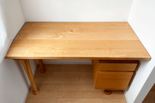 新たに天板を製作し、元の脚を取り付けて書斎デスクに。