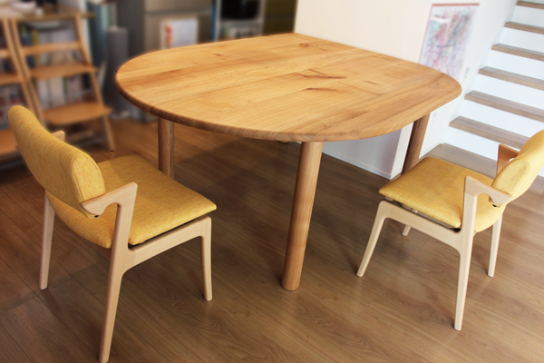 見た目にも手触りもやさしいダイニングテーブルが完成しました(^_-)-☆