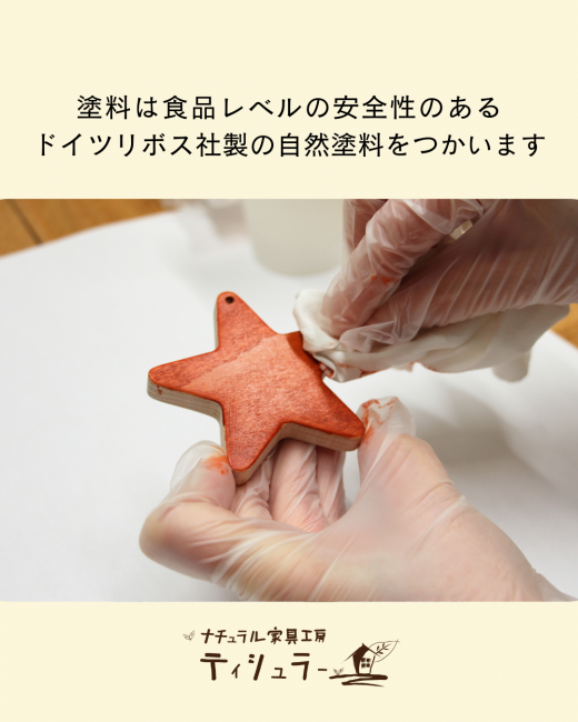 自然塗料のオイルを塗装してオリジナルチャームをつくります。