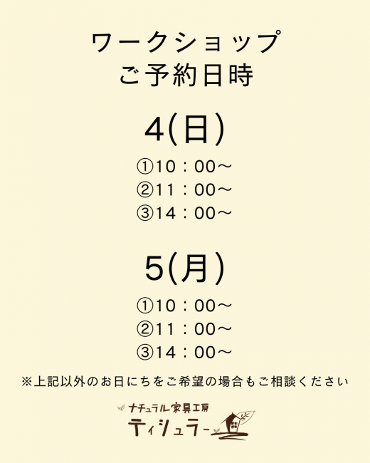 ◆ご予約時間:10:00~、11:00~、14:00~ (30分~1時間)