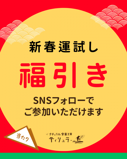 🌸新春運試し福引き*SNSフォローでご参加いただけます※福引きの景品がなくなり次第終了いたします