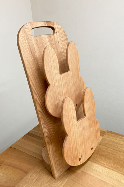 クルミの木を贅沢に使って仕立てた『うさぎ』モチーフのスリッパラック。