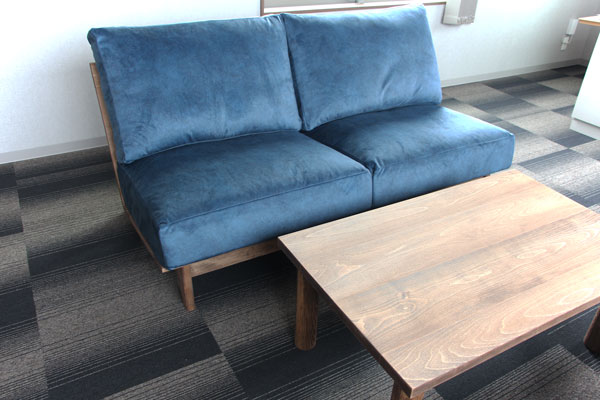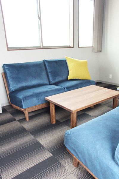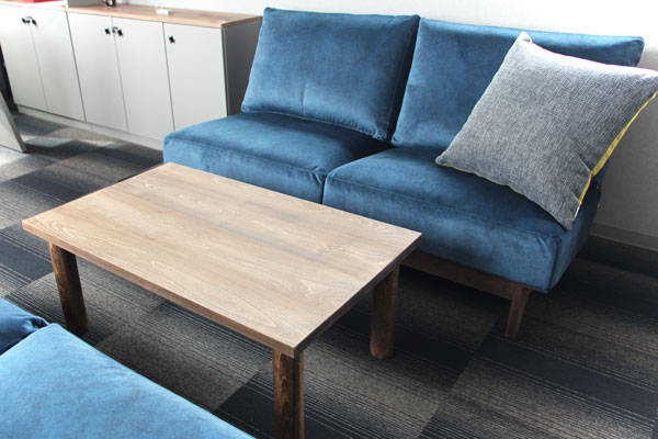 企業の応接室へ、特注のリビングテーブルとソファ2台をお届けしました。