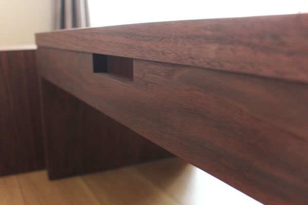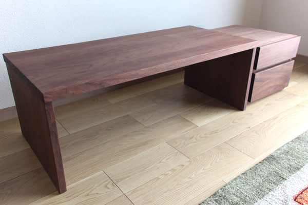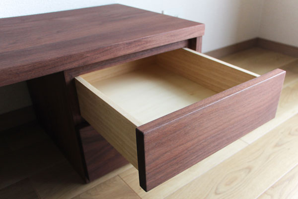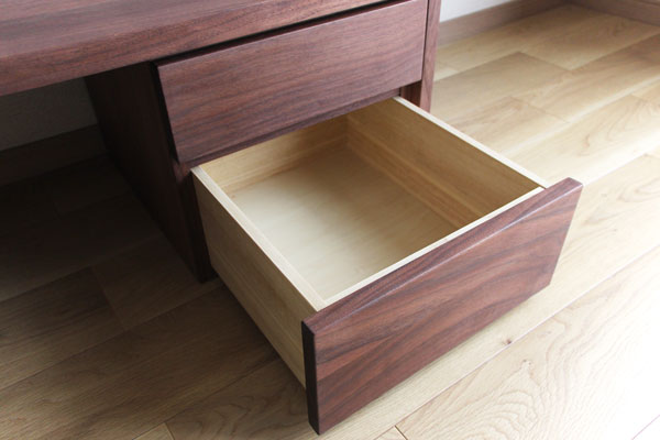 安城市N様(1527S)机サイズ:W1000×D460×H365 樹 種:ウォールナット材塗 装:ナチュラル色抽斗サイズ:W370×D460×H325樹 種:引出前板ウォールナット無垢材、他突板塗 装:ナチュラル色
